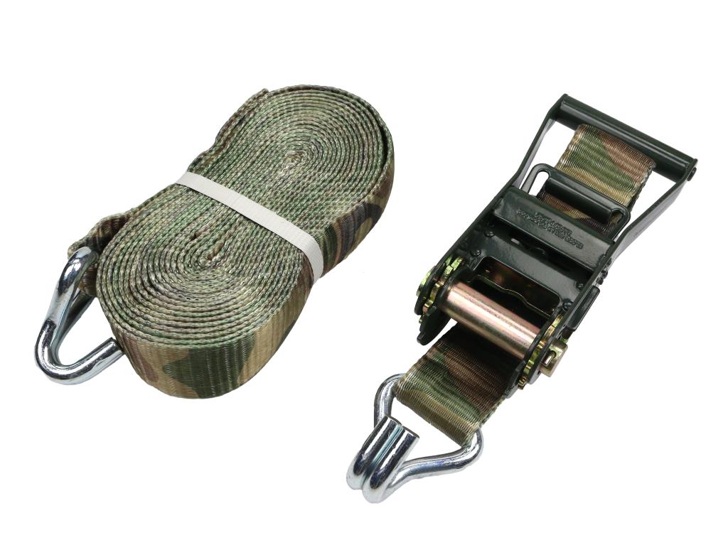 Profesjonalny pas transportowy o udźwigu 6 ton przeznaczony do bezpiecznego mocowania ładunków. Wykonany z trwałych materiałów, odporny na przetarcia i warunki atmosferyczne, dostępny w wykończeniu w wzorze kamuflażu. Produkt dostarczany jako kompletny zestaw z wzmocnionym napinaczem marki TEGER.